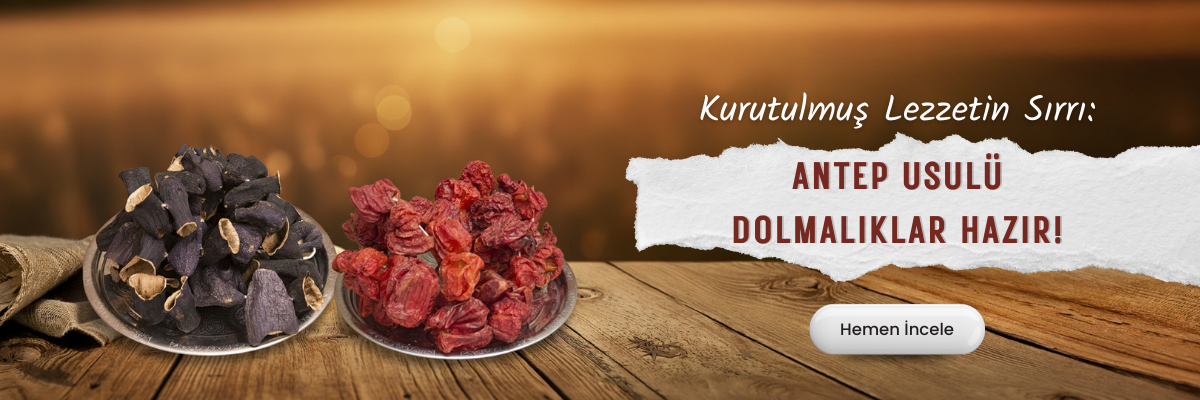 Yemeklerde yoğun lezzet arayanlar için kurutulmuş sebzeler ideal bir tercih olur. Patlıcan, kabak, biber, bamya ve domates gibi kurutulmuş sebzeler, hem uzun süre saklanabilmesi hem de tariflere kattığı zengin tat nedeniyle Antep mutfağında önemli bir yere sahiptir.