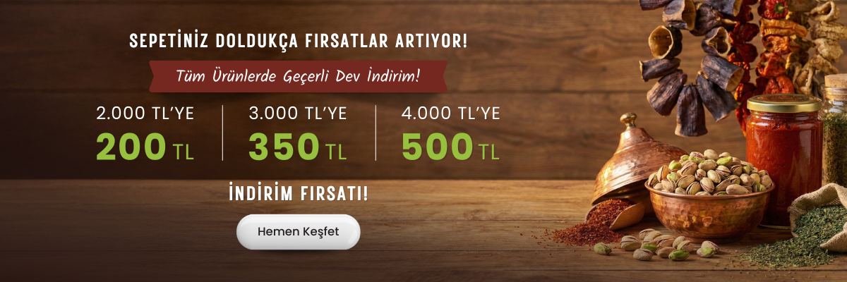 Antep salçasından zahtere, badem ezmesinden antep fıstığına, kuru patlıcandan çift cevizli sucuğa kadar birçok yöresel ürünü özenle seçilmiş seçenekleriyle sizlere sunuyor; lezzeti sofranıza taşımanız için kolay ve keyifli bir alışveriş süreci sağlıyoruz.